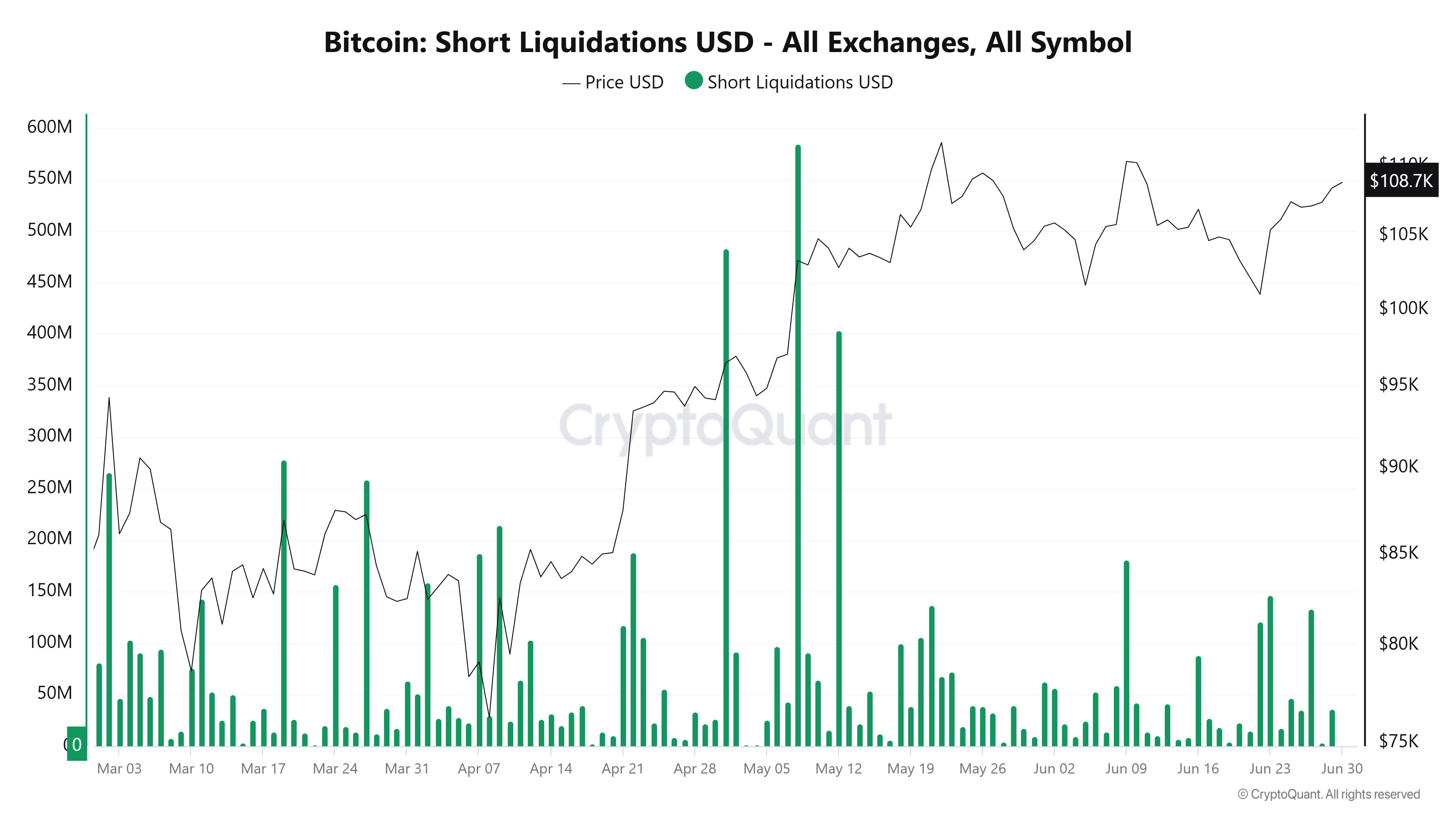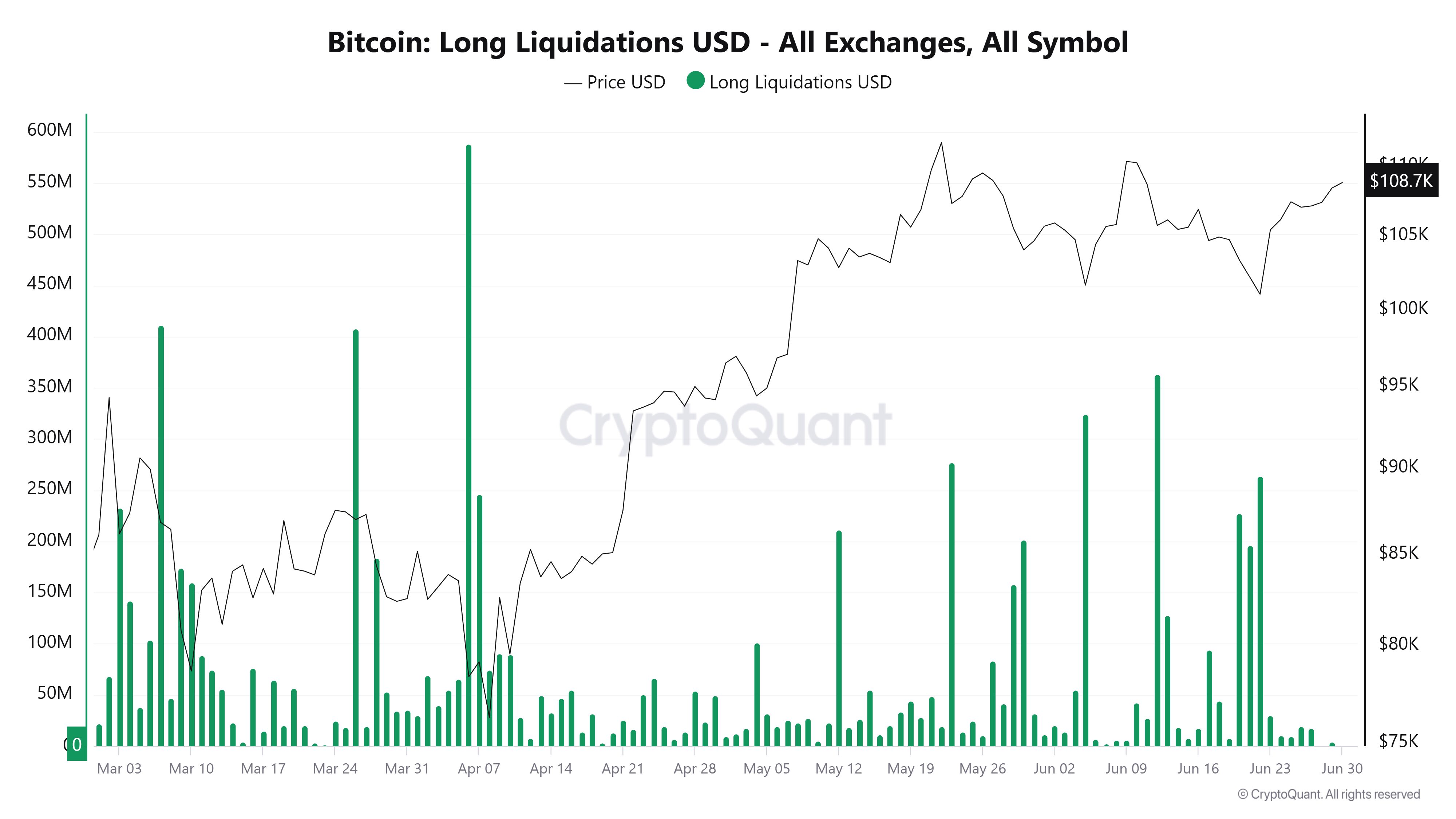 6月29日の清算データでは、ショートポジションの巻き戻しが顕著で、ロング清算額の約9倍に相当。価格上昇に対して空売り勢が押し戻されたことを示唆しています。ただし、清算規模は過去のピークと比較してやや控えめで、市場の過熱感は限定的です。