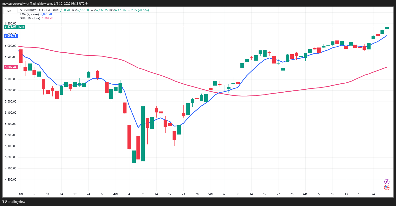 S&P500(SPX) | 6,141 | +48.86 (+0.80%) | リスク選好継続。直近高値を更新 |