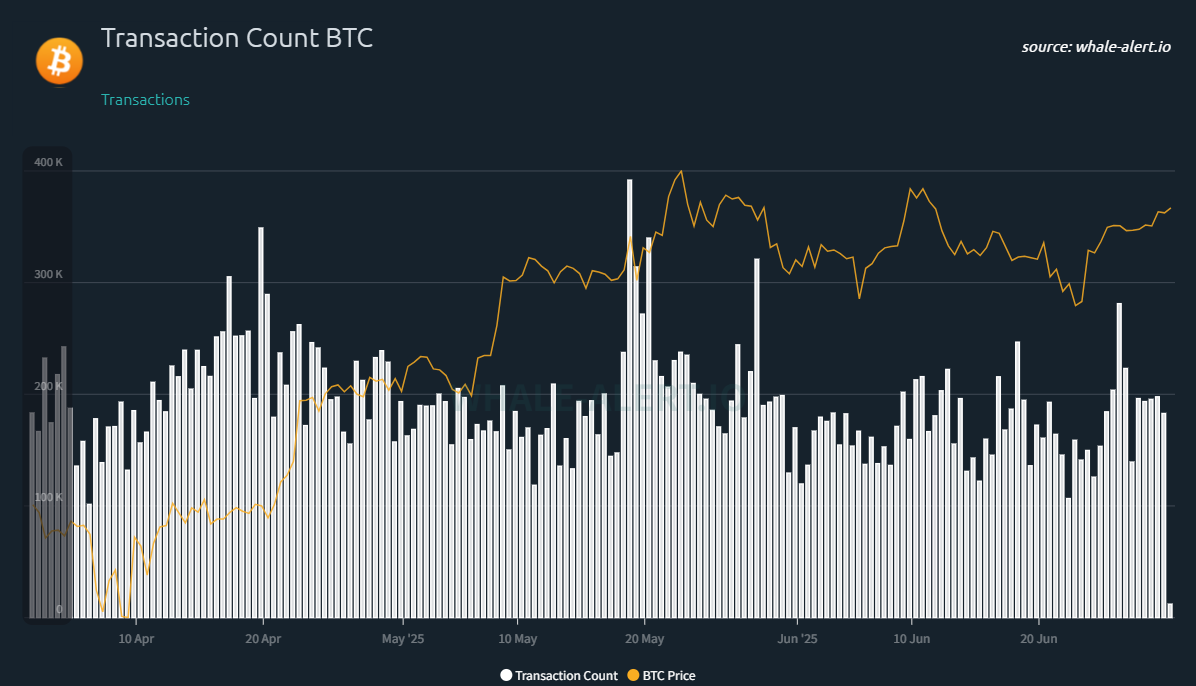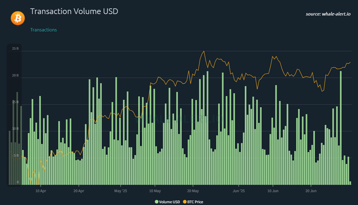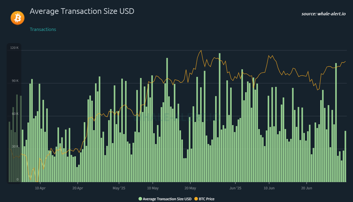2025年6月30日時点、オンチェーンの平均取引額は $46,283、取引件数は 11,952件、取引総額は $553,177,098 に達しました。